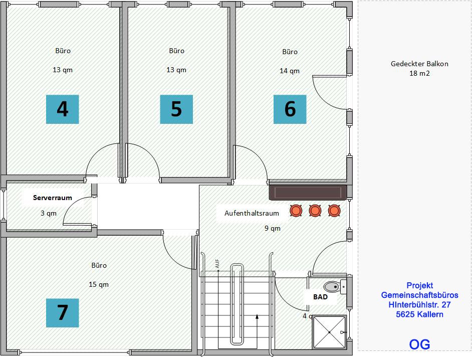 Büro Grössen zwischen 12 - 20 m2, Preise ab 950.- CHF / Monat exkl NK.